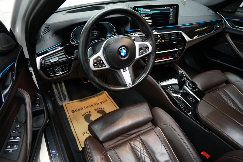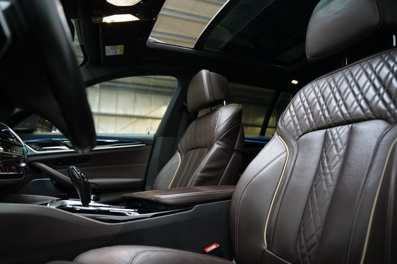 Het digitale dashboard zorgt voor een super functionele display van reisinformatie. Zelfs een kleine aanrijding kan flinke kosten veroorzaken. Gelukkig laat de achteruitrijcamera precies zien wat er zich achter de auto bevindt en geeft een waarschuwingssignaal. Als u de adaptive cruise control inschakelt, regelt de auto zelf de snelheid en de afstand tot de auto voor u. De elektrisch inklapbare trekhaak blijft mooi uit het zicht als u hem niet gebruikt. Deze BMW 5-serie is voorzien van remote services. Via uw smartphone bedient u diverse functies ook op afstand en krijgt u informatie over de status van uw auto. Natuurlijk behoren dashboard met spraakbediening, premium audiosysteem, navigatiesysteem met harde schijf, achteropkomend verkeer waarschuwing, automatische airconditioning en schakel flippers aan het stuur ook tot de uitrusting van deze complete auto.