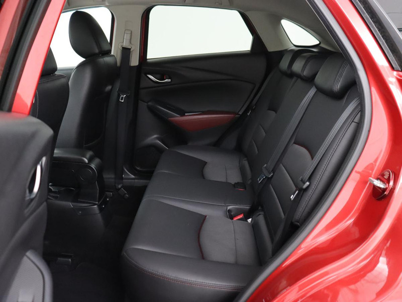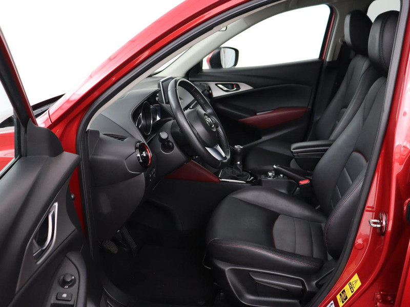 Zijn dynamische uiterlijk maakt al direct duidelijk wat voor rijervaring u van deze Mazda CX-3 mag verwachten: pure sportiviteit. De aandrijving van deze Mazda wordt verzorgd door een viercilinder benzinemotor en een handgeschakelde zesversnellingsbak. Heerlijk comfortabel zitten, en genieten van stijlvolle kwaliteit? Deze auto heeft een fraai lederen interieur. Ga samen met uw bijrijder lekker zitten in de verwarmbare voorstoelen. Bij de rijke uitrusting horen ook 18 inch lichtmetalen velgen, LED koplampen, dakspoiler, extra getint glas, in delen neerklapbare achterbank en LED-achterlichten.