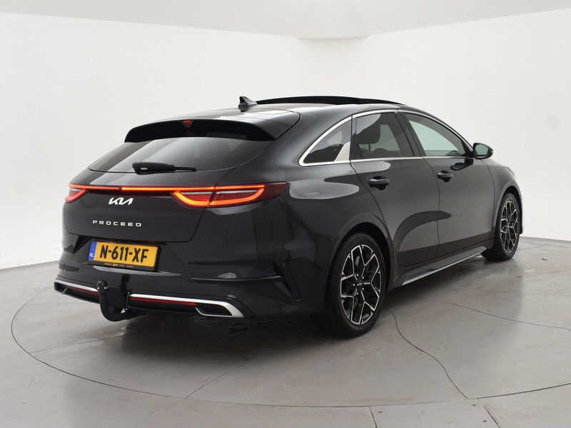 Origineel Nederlandse Kia ProCeed van 01-2022, Volle GT-line uitvoering, 1.5 T-GDi 160 PK Automaat, Elektrisch panorama-dak, Achteruitrijcamera, Half leder/alcantara interieur met sportstoelen, Digitale cockpit met verschillende thema's, Afneembare trekhaak met 1410 KG trekgewicht, LED koplampen met LED dagrijverlichting, LED achterlichten, Appl carplay/Android auto met verschillende apps waaronder: Spotify, Whatsapp en Flitsmeister, Lichtmetalen velgen, Multifunctioneel stuurwiel met F1 schakelflippers, Climate control, Adaptieve cruise control met regelbare afstand op de voorganger, Privacy glass, Elektrische achterklep, Keyless entry + go, Lane-assist, Digitale cockpit met verschillende thema's, Dodehoek detectie, Sportstand, Navigatiesysteem met kaartweergave, DAB Digitale radio.