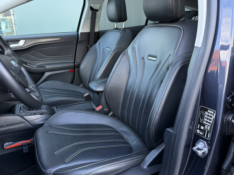 Zoals u mag verwachten van deze Ford Focus Wagon is hij uitgerust met een reeks aan actieve veiligheidssystemen. Mooi binnen de lijnen van de rijstrook blijven? Het Lane-keeping systeem helpt altijd een handje. Mindert een voorligger onverwachts te veel vaart, dan komt de forward collision warning in actie en waarschuwt meteen. De veiligheid van deze auto wordt verder verhoogd door head-up display, hill hold functie, brake assist en bandenspanningcontrolesysteem.