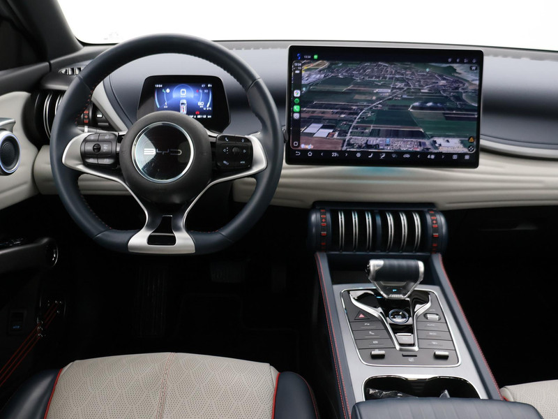 BYD / Build Your Dreams Atto 3 in de meest luxe Design uitvoering met het grootste 15,6 inch touch-screen multimediascherm die zowel horizontaal als verticaal gebruikt kan worden, BTW verrekenbaar, Origineel Nederlandse auto van 06-2024 met slechts 29.511 km, Panorama schuif/kanteldak, 18 inch lichtmetalen velgen, Blauw met wit Eco Leder interieur met rode accenten, Vehicle To Load functie waarbij de auto als oplader gebruikt kan worden voor kleine elektronische apparaten tijden kamperen bijvoorbeeld, Elektrische achterklep, Stoelverwarming, 360 graden surround view camerasysteem, Elektrische stoelverstelling, Warmtepomp, Adaptive cruise control, Apple Carplay / Android Auto appstreaming Google Maps, Flitsmeisters, Whatsapp, Spotify etc, Privacy glass, Climate control, Sfeerverlichting interieur met verschillende kleuren, Keyless-entry en keyless-drive, Skiing White parelmoer exterieurkleur, DAB+ digitale radio, Draadloze telefoonlader, Leder stuurwiel, Zwarte hemelbekleding.