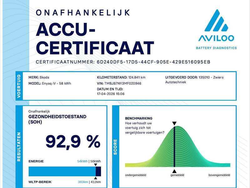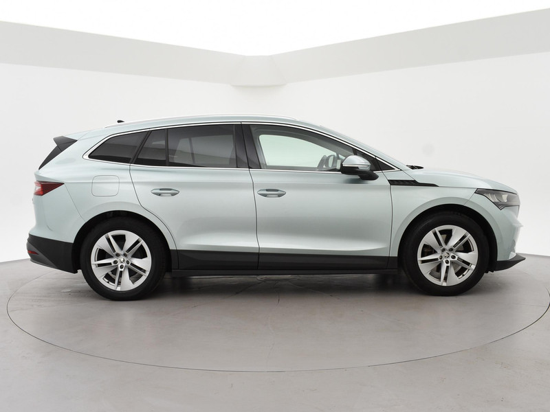 Origineel Nederlandse Enyaq IV van 2021 in het Arctic Silver (lichtgroen) met Cognac volledig leder interieur (top kleurcombinatie), SOH 93% zie rapport tussen de foto's, Elektrische trekhaak, Elektrisch panorama-dak, Achteruitrijcamera, Sfeerverlichting met verschillende kleuren, Botsherkenning, Head-up display, Stoelverwarming, Lijnassistentie, Verkeersbordenherkenning, Navigatie, Apple Carplay, Android Auto, DAB Digitale radio, Bluetooth, Climate control, Elektrische achterklep, Standkachel/Voorklimatiseren, Cruise control, 19 inch lichtmetalen velgen.