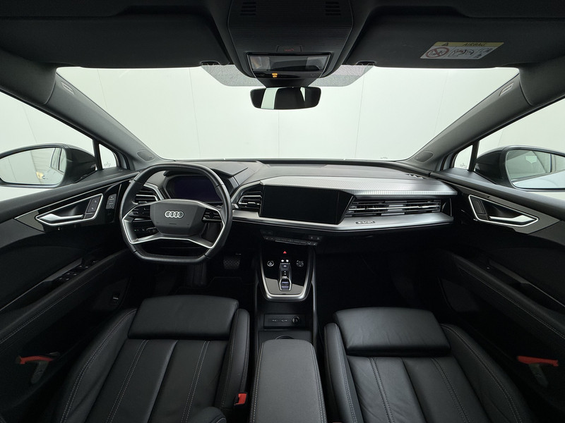 Hightech elektronica en emissievrij rijden komen samen in de Audi Q4 e-tron. Deze auto biedt een onvergelijkbare rijbeleving dankzij de volledig elektrische aandrijflijn. U kunt ervoor kiezen vanwege het milieu. Maar de elektromotor biedt ook power en prestaties! De krachtige motor geeft deze Audi uitstekende prestaties. Deze Audi is voorzien van een mooie en comfortabele lederen bekleding. Neem plaats op de comfortabele stoelen. Dankzij de elektrische bediening en het geheugen is het eenvoudig om hierin de beste zitpositie te vinden. Fijn zo'n elektrisch bediend glazen panoramadak. De achterklep opent automatisch met een druk op de knop. Handig als u met volle handen staat. De koplampen zijn voorzien van matrix LED-verlichting waarmee u aanzienlijk verder kan kijken in het donker. Het systeem past zelf de lichtstraal aan op het moment tegenliggers verblind kunnen worden. Tot de uitrusting van deze Audi behoren ook 19 inch lichtmetalen velgen, getint glas, in delen neerklapbare achterbank, LED-achterlichten en verstelbare lendensteunen.