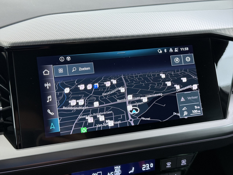 Hightech elektronica en emissievrij rijden komen samen in de Audi Q4 e-tron. Deze auto biedt een onvergelijkbare rijbeleving dankzij de volledig elektrische aandrijflijn. U kunt ervoor kiezen vanwege het milieu. Maar de elektromotor biedt ook power en prestaties! De krachtige motor geeft deze Audi uitstekende prestaties. Deze Audi is voorzien van een mooie en comfortabele lederen bekleding. Neem plaats op de comfortabele stoelen. Dankzij de elektrische bediening en het geheugen is het eenvoudig om hierin de beste zitpositie te vinden. Fijn zo'n elektrisch bediend glazen panoramadak. De achterklep opent automatisch met een druk op de knop. Handig als u met volle handen staat. De koplampen zijn voorzien van matrix LED-verlichting waarmee u aanzienlijk verder kan kijken in het donker. Het systeem past zelf de lichtstraal aan op het moment tegenliggers verblind kunnen worden. Tot de uitrusting van deze Audi behoren ook 19 inch lichtmetalen velgen, getint glas, in delen neerklapbare achterbank, LED-achterlichten en verstelbare lendensteunen.