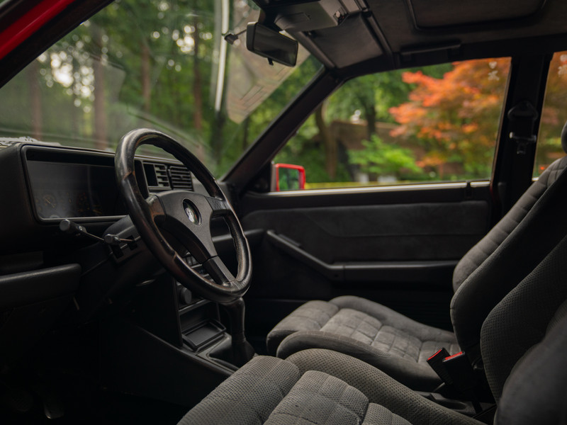 We hoeven dus niet uit te leggen dat deze familie uit échte liefhebbers bestaat. De Delta Evo ziet er dan ook uit alsof hij altijd met een fluwelen voet is bediend. En dat is extra knap, aangezien we weten hoe verleidelijk het kan zijn om met dit rallyicoon de grens op te zoeken. Het Rosso Monza lakwerk is in al die jaren slecht één keer overgedaan. Voor de rest is alles nog precies zoals hij af-fabriek is geleverd. Dus inclusief de originele raampartijen, verlichtingsunits en ook het elektrisch bedienbare schuif-/kanteldak hoort daarbij. De hoekige koets, brede spatborden, 15 inch lichtgewicht wielen en uitbundige dakspoiler zijn synoniem aan HF Integrale. Wij houden ervan.