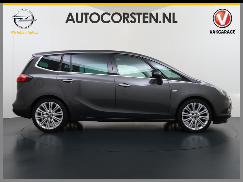 Bomvolle Zafira, met lounge, 2 delig panoramadak/voorruit, AGR-Comfort Stoelen met Leer etc. Een toonbeeld van Duitse kwaliteit in techniek, comfort en rijprestaties. Dat is deze Opel Zafira Tourer. Hij heeft een benzinemotor en een automatische transmissie. Ouderwets vakmanschap en natuurlijke materialen komen samen in het lederen interieur. Winter... Eerst krabben, dan genieten van de stoelverwarming. Het glazen panoramadak biedt u een breed zicht op de omgeving. De gasontladingslampen van de xenonverlichting zorgen voor een krachtige en heldere lichtbundel. De uitmonstering van deze auto wordt gecompleteerd door onder meer 19 inch lichtmetalen velgen, donker getint glas achter, verstelbare achterbank en snelheidsafhankelijke stuurbekrachtiging.