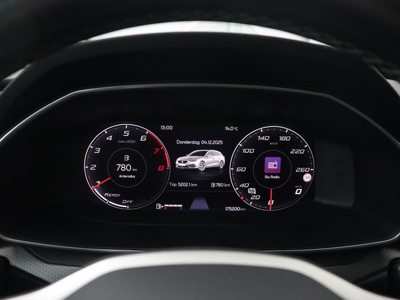 De indeling van het digitale dashboard is zo ingericht dat u met één blik precies weet wat u weten wilt. Parkeer en kijk niet om! De achteruitrijcamera doet dat voor u. Adaptive cruise control houdt de ingestelde snelheid vast en houdt afstand tot het voertuig voor u. De radio harder of zachter zetten of iemand uit uw contactenlijst bellen. Dankzij de spraakbediening doet u dit allemaal met uw stem. Met Connected Services wordt iedere rit nóg veiliger. Natuurlijk behoren full map navigatiesysteem, automatische airconditioning, DAB ontvangst, regensensor, automatisch dimmende binnenspiegel en lederen stuur ook tot de uitrusting van deze complete auto.
