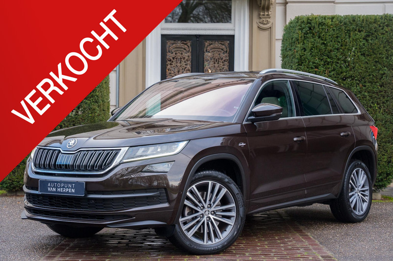 Zeer nette Skoda Kodiaq 2.0 TSI Laurin&Klement. Deze auto is uitgevoerd in de zeer unieke kleur Magnetic Brown Metallic, dit combineert zeer goed met de 19 inch lichtmetalen velgen. Deze smaakvolle configuratie wordt complementeert door een beige vol lederen interieur.