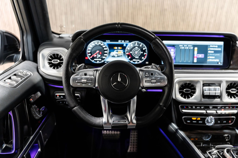 U rijdt gemakkelijk, comfortabel en zonder zorgen met deze Mercedes-Benz G-klasse. Bent u bestand tegen een beetje bekijks? Dan zal de AMG-styling u zeker aanspreken. De krachtige motor geeft deze Mercedes-Benz uitstekende prestaties. Misschien bent u niet veeleisend, maar na dit elektrisch bediende glazen panorama dak en het lederen interieur wilt u nooit anders meer. Neem plaats op de comfortabele stoelen. Dankzij de elektrische bediening en het geheugen is het eenvoudig om hierin de beste zitpositie te vinden. Op gure dagen is het ook achterin heerlijk bijkomen op de verwarmde achterbank. De uitmonstering van deze auto wordt gecompleteerd door onder meer 22 inch lichtmetalen velgen, LED koplampen, AMG-styling, warmtewerend glas, in delen neerklapbare achterbank en treeplanken.