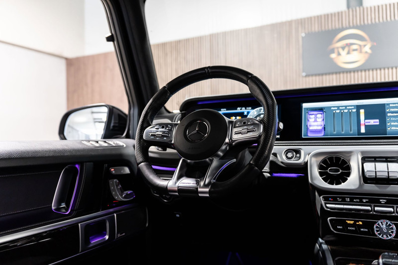 U rijdt gemakkelijk, comfortabel en zonder zorgen met deze Mercedes-Benz G-klasse. Bent u bestand tegen een beetje bekijks? Dan zal de AMG-styling u zeker aanspreken. De krachtige motor geeft deze Mercedes-Benz uitstekende prestaties. Misschien bent u niet veeleisend, maar na dit elektrisch bediende glazen panorama dak en het lederen interieur wilt u nooit anders meer. Neem plaats op de comfortabele stoelen. Dankzij de elektrische bediening en het geheugen is het eenvoudig om hierin de beste zitpositie te vinden. Op gure dagen is het ook achterin heerlijk bijkomen op de verwarmde achterbank. De uitmonstering van deze auto wordt gecompleteerd door onder meer 22 inch lichtmetalen velgen, LED koplampen, AMG-styling, warmtewerend glas, in delen neerklapbare achterbank en treeplanken.