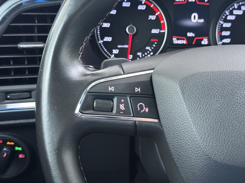 Parkeer en kijk niet om! De achteruitrijcamera doet dat voor u. De elektrisch inklapbare trekhaak maakt een einde aan ingewikkelde handelingen. Kies de muziek waarvan u houdt, dankzij de DAB-radio klinkt het altijd geweldig. Intussen bedient u het audio-installatiesysteem en het navigatiesysteem met de knoppen op het stuur of met uw stem. Tot de standaard uitrusting van deze auto hoort ook automatische airconditioning. Om de veiligheid onderweg te verhogen, heeft deze SEAT zowel een automatisch inschakelbare verlichting als een regensensor aan boord, zodat hij zelf de verlichting en de ruitenwissers kan inschakelen. De SEAT is standaard voorzien van: schakelpaddles aan het stuur, cruise control, automatisch dimmende binnenspiegel, isofix-aansluiting, usb-aansluiting en centrale deurvergrendeling met afstandsbediening.