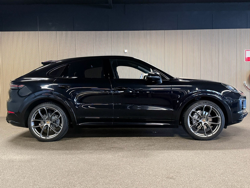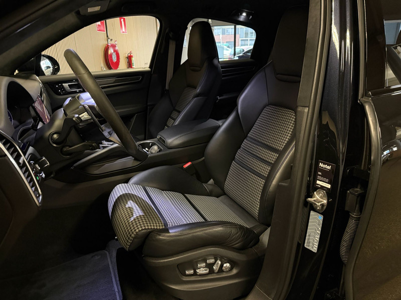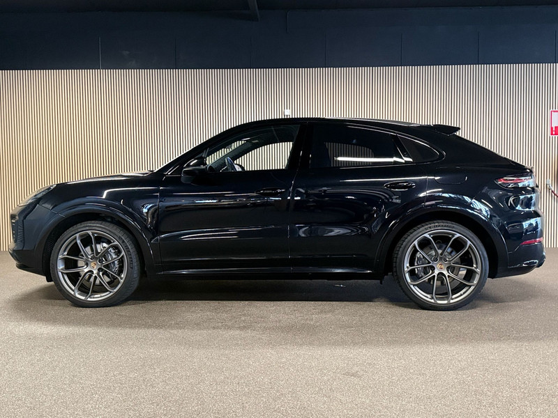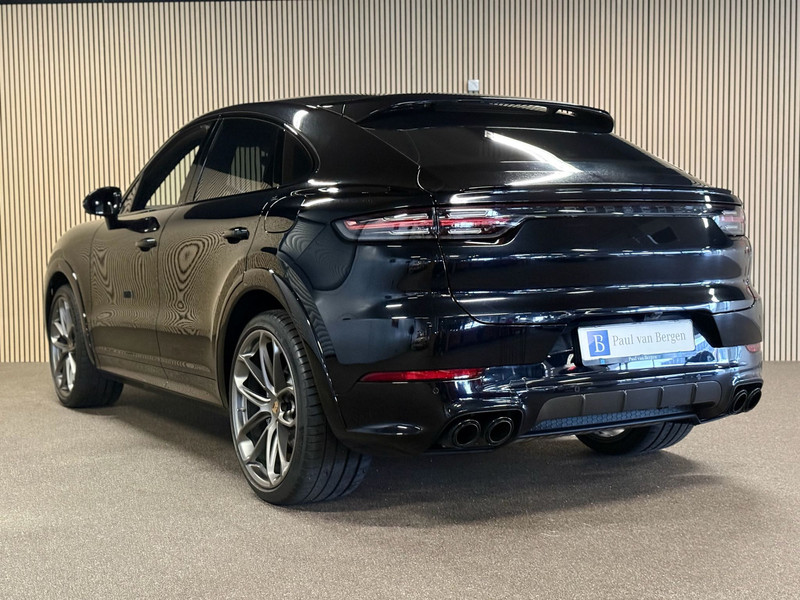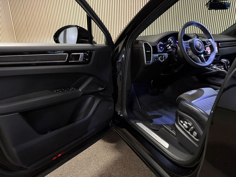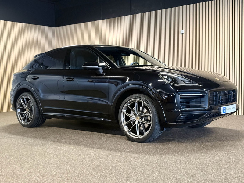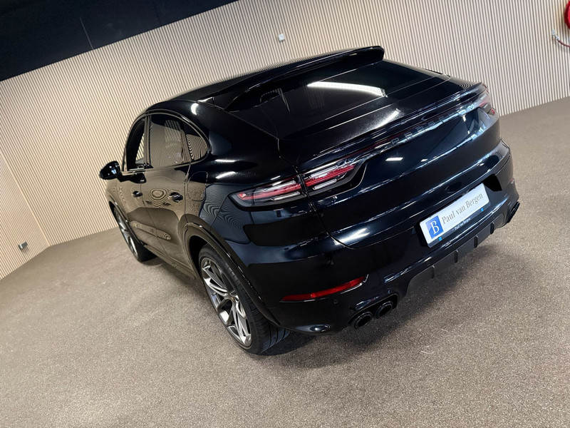 Deze Porsche Cayenne Coupé 3.0e Hybrid uit 2021 is uitgevoerd met het zeldzame en exclusieve Lightweight Package, enkel beschikbaar op de Coupé en niet op de reguliere Cayenne. Het exterieur is afgewerkt in stijlvol zwart en straalt kracht en elegantie uit. Het Lightweight Package onderscheidt zich door het carbon dak, het Sport Design pakket met specifieke bumpers en dorpels, en de indrukwekkende 22-inch GT Design gesmede velgen. Achterlichten in verduisterde uitvoering, wielkastverbredingen en een sportdiffusor in carbon versterken het gespierde en dynamische karakter. Deze Porsche is dealer geleverd en onderhouden. Wij leveren de auto met 12 maanden BOVAG-garantie.