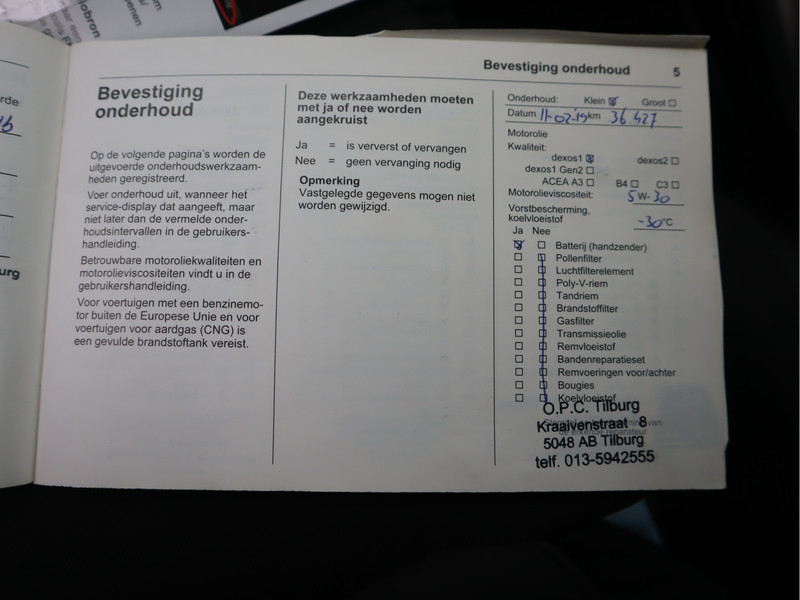 Onderhoudsboekje aanwezig? ja -