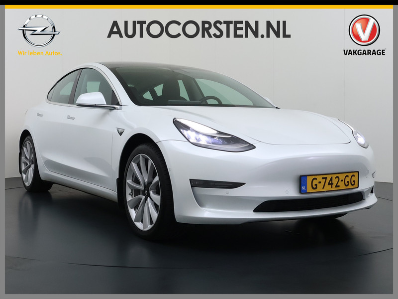 Tesla Model 3 Long Range AWD 75kWh Lmv 19" AutoPilot Leder Panoramadak Adaptive-Cruise Camera's Elektr.-Stuur+Stoelen+Spiegels+Geheugen+Easy-Entry+Verwarmde stoelen Park assistent Pdc WIFI Lane-Assist