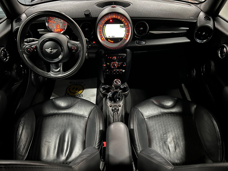 Daarnaast is deze Mini uitgerust met het John Cooper Works pakket, wat zorgt voor een sportieve look met onder andere 17 inch glanzend zwarte lichtmetalen velgen, sportstoelen, voor- en achterspoiler en een dakspoiler. Dit geeft de auto een extra dynamische uitstraling.