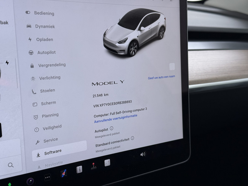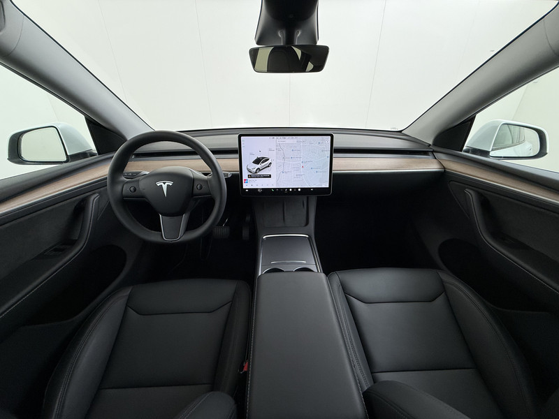 Technologische innovaties. Aantrekkelijke vormgeving. De Tesla Model Y verenigt het beste van twee werelden. De modernste techniek is toegepast om u in alle rust en stilte van de rit te laten genieten. Daarbij zult u zien dat de tijd om de accu's op te laden enorm meevalt, en dankzij de flinke actieradius hoeft u dat ook niet zo vaak te doen. De krachtige motor geeft deze Tesla uitstekende prestaties. Deze Tesla is voorzien van een mooie en comfortabele lederen bekleding. Neem plaats op de comfortabele stoelen. Dankzij de elektrische bediening en het geheugen is het eenvoudig om hierin de beste zitpositie te vinden. Hoe koud het buiten ook is, het verwarmbare stuurwiel en de verwarmbare voorstoelen brengen uw handen, vingers en lichaam snel weer op temperatuur. De elektrische achterklep opent met een druk op de knop, zodat u gemakkelijk toegang heeft tot de bagageruimte. Het interieur baadt in een zee van licht door het glazen panoramadak. Ook elektrisch verstelbare stuurkolom, 19 inch lichtmetalen velgen, LED-dagrijverlichting, getint glas en LED-achterlichten zijn aan boord.