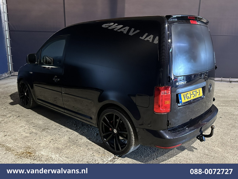 Stoere Volkswagen Caddy L1H1 Euro6 met airconditioning en lichtmetalen velgen. Dealer onderhouden en uitgevoerd met Apple Carplay, cruisecontrol, lederen bekleding, trekhaak en bluetooth telefoonvoorbereiding.