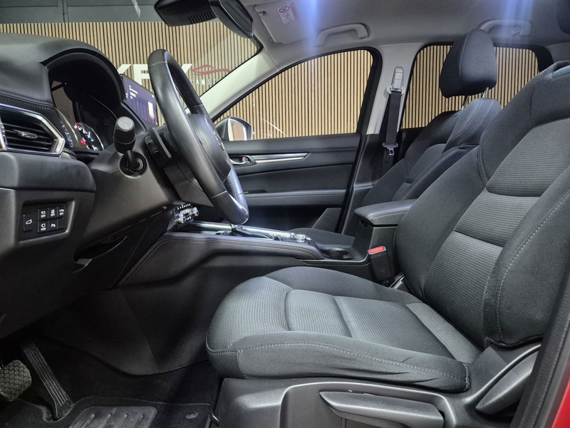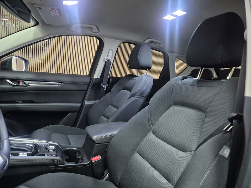 De nieuwste veiligheidssystemen komen in deze Mazda CX-5 samen. In het instrumentarium kunt u bovendien de verkeersborden zien die u onderweg tegenkomt. Zo helpt deze Mazda u om veiliger te rijden. Het Lane-keeping systeem zorgt dat u mooi binnen de lijntjes blijft. Ongemerkt buiten de rijstrook komen is er niet meer bij. Mindert een voorligger onverwachts te veel vaart, dan komt de forward collision warning in actie en waarschuwt meteen. In deze Mazda vinden we verder een head-up display, dodehoekdetectie, accident avoidance system, hill hold functie, brake assist en vermoeidheidsherkenning.