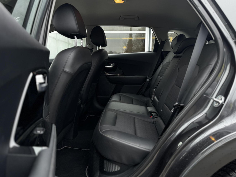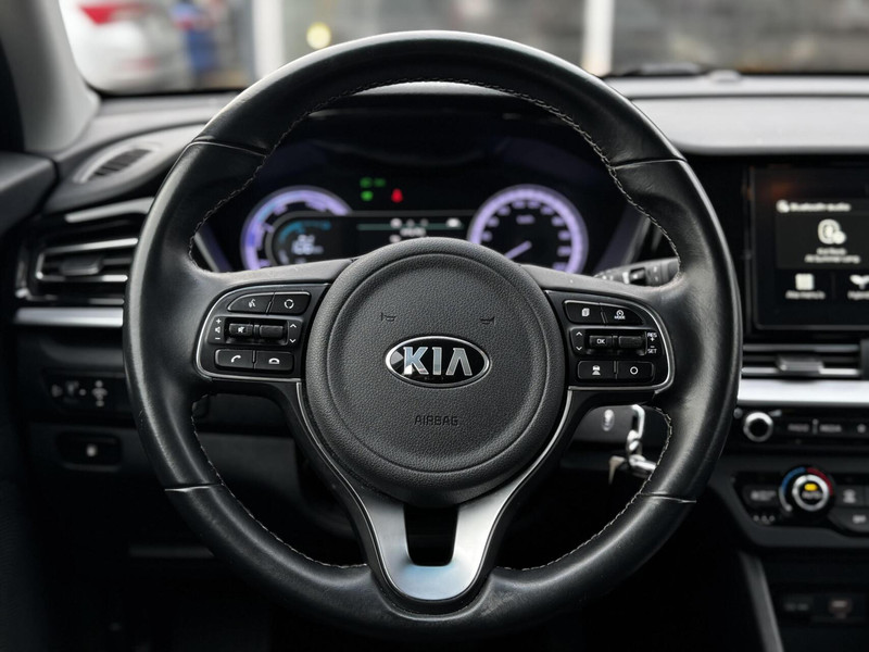 Deze Kia Niro is een volwaardige hybride. Dat betekent dat de auto korte stukken volledig elektrisch kan rijden, de benzinemotor ondersteunt tijdens accelereren en energie terugwint tijdens het remmen. Opladen via een stekker is niet nodig; alles werkt volledig automatisch.