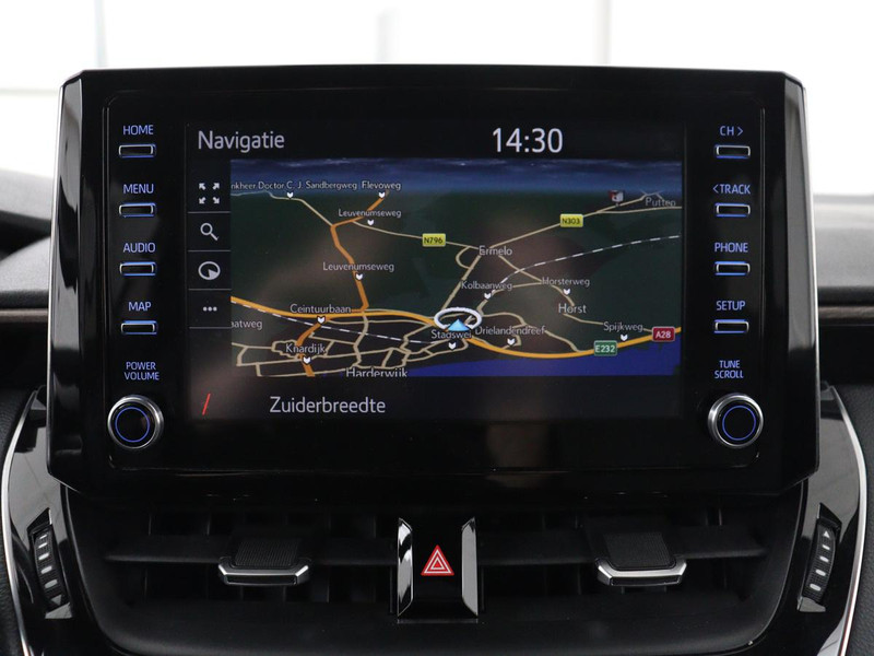 Het digitale dashboard is niet alleen enorm fraai en handig, maar draagt actief bij aan een veilige en slimme rit. Een onopvallend paaltje of een overstekend kind achter de auto brengt risico's met zich mee. Gelukkig laat de achteruitrijcamera feilloos zien of alles veilig is. Adaptive cruise control houdt de ingestelde snelheid vast en houdt afstand tot het voertuig voor u. Als u 'm vraagt 'hoe gaat het?' geeft deze auto zelf het antwoord. Via de app op uw smartphone. U checkt de meters waar u maar wilt, of activeert diverse functies alvast. De bediening van het audio-installatiesysteem en het full map navigatiesysteem gebeurt met knoppen op het stuur en als u wilt zelfs met uw stem. De audio is overigens voorzien van DAB-radio voor een altijd heldere ontvangst. Ook is de Toyota uitgerust met: achteropkomend verkeer waarschuwing, automatische airconditioning, sportstuur met schakelpaddels, regensensor, keyless entry en buitentemperatuurmeter.