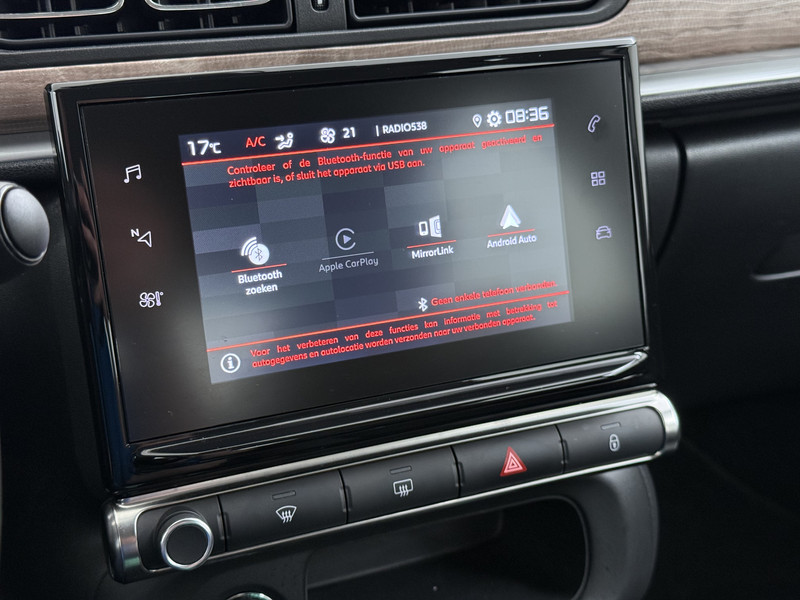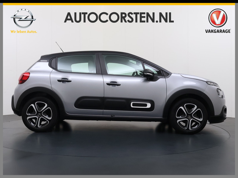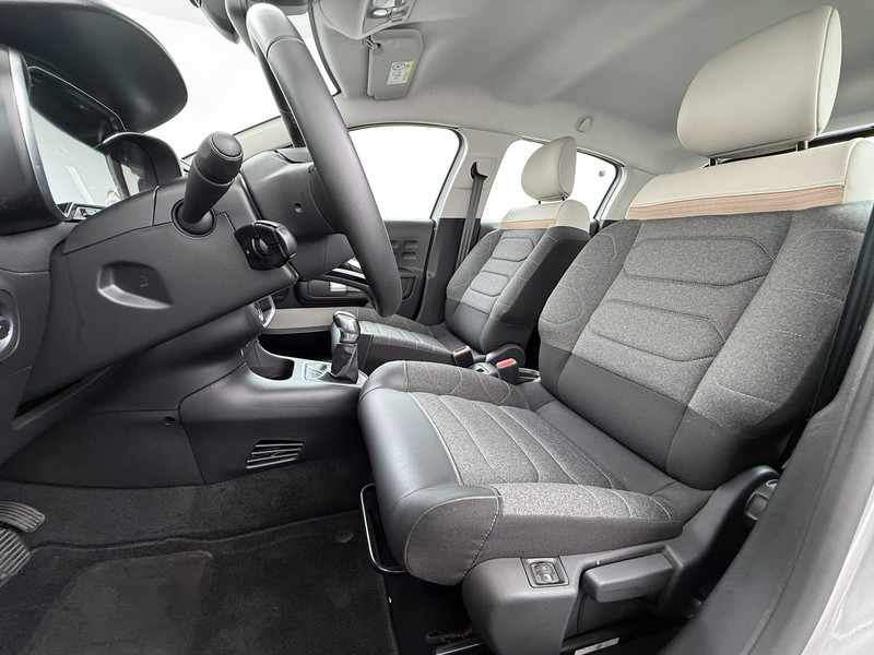 Spraaksturing is onderdeel van de uitrusting van deze auto. Met uw stem kunt u de belangrijkste voertuigfuncties bedienen. Appen met uw auto? Geen probleem. U kunt van overal contact opnemen, de functies controleren en activeren. U bedient 'm met remote services. Met het navigatiesysteem kiest u de snelste route naar uw eindbestemming. Deze Citroën C3 is voorzien van sensoren aan de achterzijde om een achteropkomend verkeer waarschuwing te geven als de afstand tussen u en een achterligger te klein is. Nooit meer te warm of te koud. De automatische airconditioning zorgt altijd voor de temperatuur die u kiest. De uitrusting van deze auto is met DAB ontvangst, regensensor, cruise control, keyless entry, automatisch dimmende binnenspiegel en lederen stuur behoorlijk compleet.