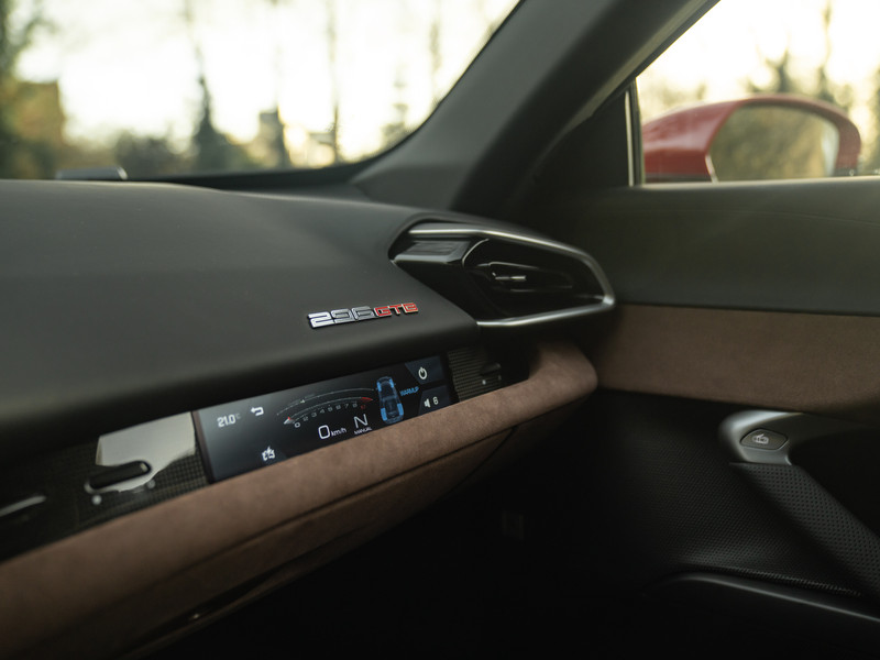 De charme van een gloednieuwe Ferrari samenstellen is natuurlijk dat u tot in detail zelf kunt bepalen hoe een schoonheid als 296 GTB eruit komt te zien. Maar soms is het ook wel lekker als al het voorwerk al tot in perfectie is gedaan. Eén ding is zeker: deze configuratie is net zo traditioneel als verrassend. En dus moet u misschien blij zijn dat er weinig tot niets te kiezen valt. Want zie een samenstelling als deze maar eens te overtreffen: Rosso Mugello lak met Matte Diamond Polished Forged Wheels, Giallo exterieurdetails, Nero / Iroko lederen + Alcantara bekleding, Daytona pads in de Carbon Racing Seats (Size XL), en heel veel meer carbon interieurdetails laten een onuitwisbare indruk achter. Zelden zagen we zo’n technisch geavanceerde volbloed met zóveel stijl! De rijbeleving kan en mag dan natuurlijk niet achterblijven. Gelukkig stelt de Ferrari 296 Gran Turismo Berlinetta ook in dat opzicht allerminst teleur. Sterker nog, de 830 pk / 740 Nm sterke 6-cilinder heeft meer ziel dan menig moderne macchina zonder turbo- en/of hybridehulp. Verder is er technische ondersteuning aan boord in de vorm van een Front Radar, Liftsysteem, Adaptieve koplampen en een Surround View Camera. Via een Passenger Display kijkt de bijrijder mee of de beloofde acceleratietijd van 0 naar 100 km/h binnen 2,9 seconden wel wordt gehaald. Aan ons Italiaanse meesterwerk zal het niet liggen…