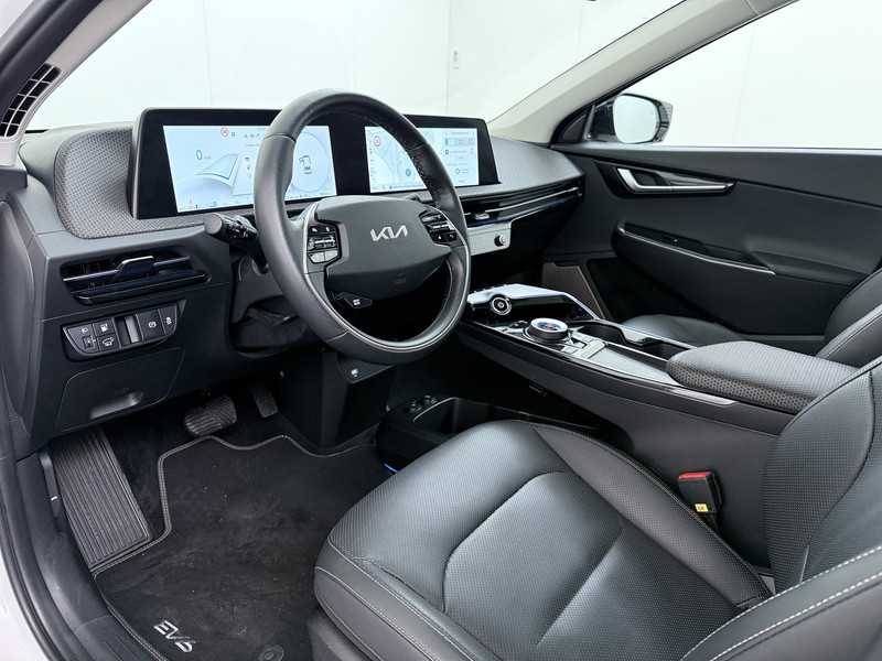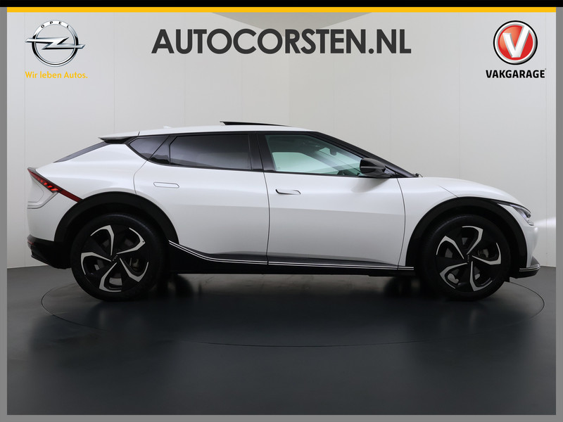 Het maakt niet uit of u binnen of buiten de stad rijdt. Het rijbereik van deze elektrische Kia EV6 biedt u alle vrijheid om te gaan en te staan waar u wilt. Op een volle acculading kan deze auto de gebruikelijke dagelijkse ritten allemaal maken. Het opladen gaat eenvoudig aan een openbare laadpaal of aan uw eigen oplaadpunt thuis. Een krachtige motor geeft deze auto zijn sportieve prestaties. Het lederen interieur geeft deze auto luxe en klasse. Neem plaats op de comfortabele stoelen. Dankzij de elektrische bediening en het geheugen is het eenvoudig om hierin de beste zitpositie te vinden. In dit voertuig hoeft u nooit meer kou te lijden dankzij functies als stoelverwarming en verwarmbare achterbank, evenals een verwarmbaar stuur. Wat een licht geeft dat glazen elektrisch bedienbare panoramadak. Met een druk op de knop gaat de elektrische achterklep open. Bij de uitrusting van deze Kia horen onder meer 20 inch lichtmetalen velgen, LED koplampen, warmtewerend glas, in delen neerklapbare achterbank, LED-achterlichten en verstelbare lendensteunen.