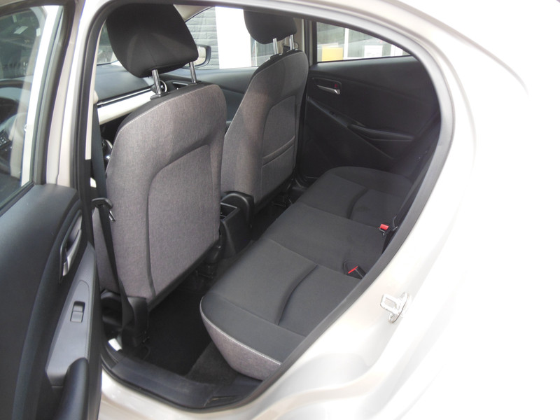 Een optie die de veiligheid verhoogt, is de bediening vanaf het stuur van het audiosysteem (met dab-radio!). Aan boord van deze Mazda 2 is een achteropkomend verkeer waarschuwing voor extra veiligheid. Stel de cruise control in op de gewenste snelheid en u rijdt comfortabel en zuinig. Autosleutels? Overbodig. Met de elektronische token op zak stapt u zo in en met een druk op de start-stopknop is de motor in bedrijf. Het hele jaar door zorgt airconditioning voor een prettige temperatuur. De Mazda is standaard voorzien van: lederen stuur, centrale deurvergrendeling met afstandsbediening, boordcomputer en lederen versnellingspook.