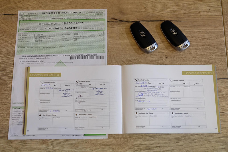 - 27-02-2024 (21.122 km): Onderhoudsbeurt uitgevoerd door Hyundai-merkdealer Pierard in Achené-Ciney. Afgestempeld in het onderhoudsboekje.