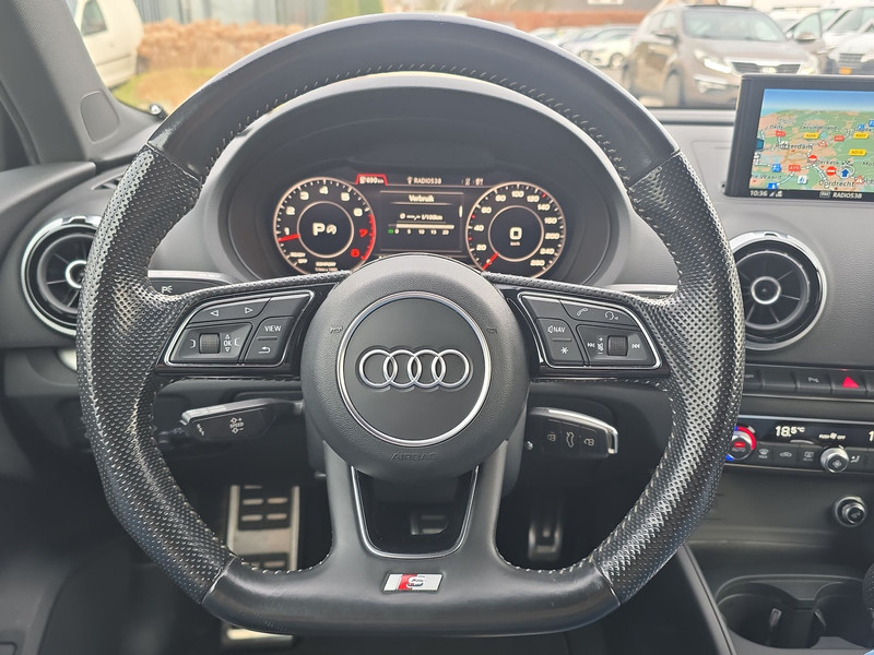 Het afgevlakte S-Line stuurwiel, de half-lederen sportstoelen en de hoogwaardige afwerking geven het interieur een premium karakter zoals je van Audi mag verwachten.