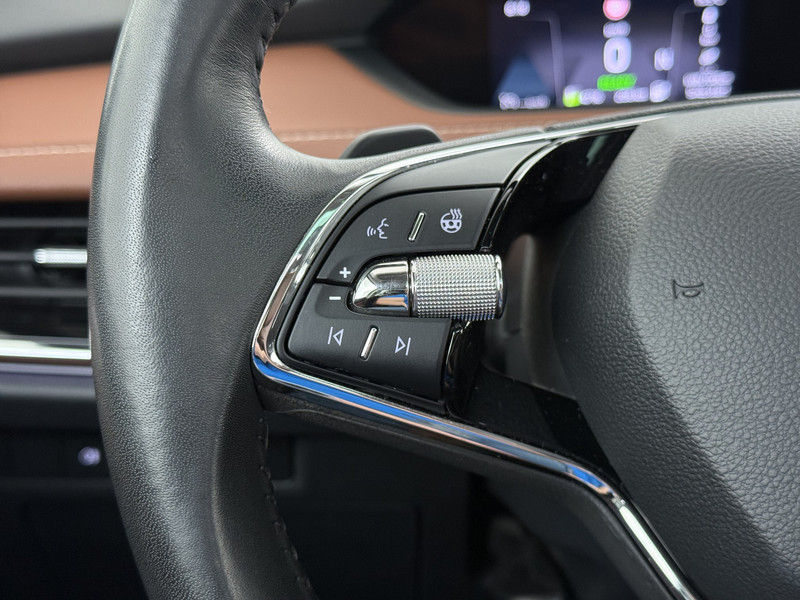 Uw rit wordt comfortabel en veilig gemaakt door het digitale dashboard dat alles projecteert wat u wenst in de digitale wereld van mobiliteit. Met een gerust hart achteruitrijden? Dat kan, dankzij de achteruitrijcamera. En dan die elektrisch inklapbare trekhaak: gemak dient de mens. Oliepeil, bandenspanning, sloten en andere functies zijn via een speciale app overal te checken dankzij Connected Services. Een goede veiligheidsvoorziening is de spraakbediening en stuurbediening voor belangrijke functies. De auto is natuurlijk voorzien van een full map navigatiesysteem en het audiosysteem biedt glasheldere geluidskwaliteit dankzij DAB-ontvangst. U bent in deze ŠKODA ook voorzien van electronic climate control, schakelpaddles aan het stuur, draadloos opladen, regensensor, cruise control en keyless entry.