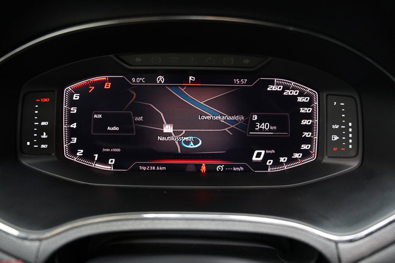 Snelheid, omgevingsinfo, navigatie en communicatie... Het digitale dashboard geeft alles realtime weer. Met een gerust hart achteruitrijden? Dat kan, dankzij de achteruitrijcamera. Met adaptive cruise control houdt deze auto automatisch afstand tot uw voorligger. Het infotainmentsysteem bedient u met uw vingers of met uw stem, met dank aan de geïntegreerde stembediening. Zorgeloos en geconcentreerd rijden? Het origineel navigatiesysteem wijst de weg! En dan is deze auto ook nog eens voorzien van automatische airconditioning, regensensor, keyless entry, buitentemperatuurmeter, automatisch dimmende buitenspiegels en lederen stuur.