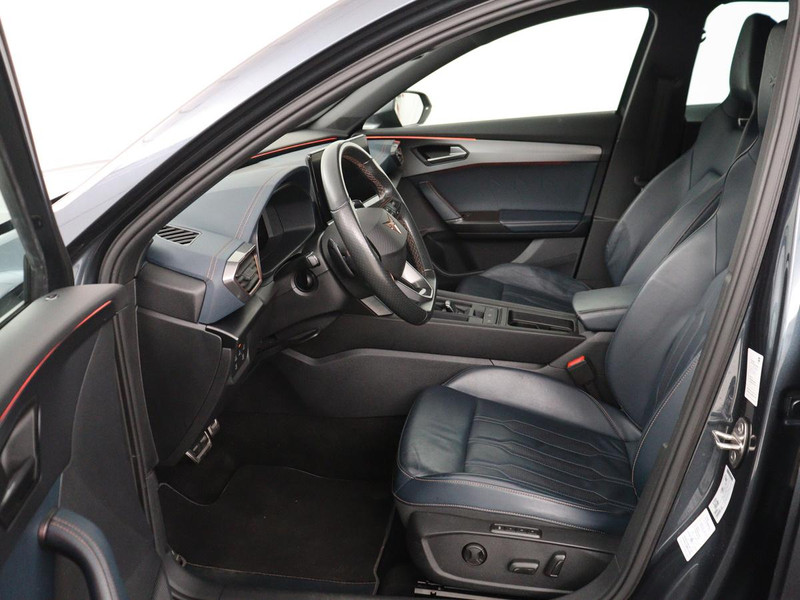 De eendrachtige samenwerking van de benzinemotor en de elektromotor geeft deze CUPRA Formentor zijn geweldige rijkwaliteiten. Houdt u van een luxe uitstraling? Dan is het lederen interieur een heel aantrekkelijke extra! Bestuurder en bijrijder krijgen een warm welkom: deze CUPRA Formentor is voorzien van verwarmbare voorstoelen. De sportstoelen zorgen ervoor dat u goed en comfortabel zit, ook als het gas erop gaat. De bagageruimte is toegankelijk via een comfortverhogende elektrische achterklep. Al is het nog zo fris, koude handen zijn verleden tijd door het verwarmd stuurwiel. In deze CUPRA profiteert u onder andere ook van: 19 inch lichtmetalen velgen, Full LED koplampen, adaptief dempingsysteem, extra getint glas, in delen neerklapbare achterbank en LED-achterlichten.
