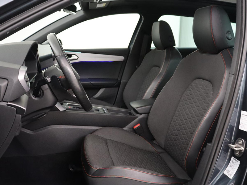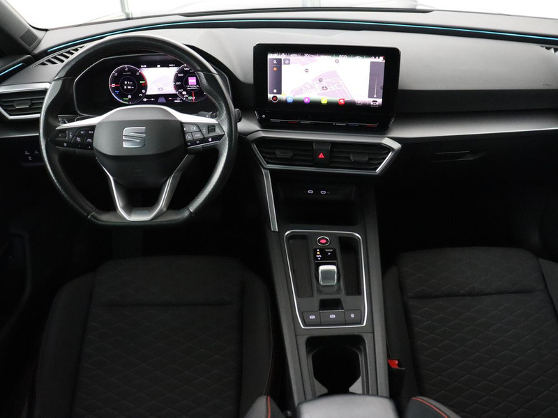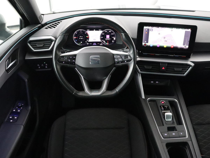 Over het digitale dashboard is goed nagedacht. Alle belangrijke functies binnen en buiten in één oogopslag. Een vergeten muurtje, een verborgen paaltje? Dat gebeurt niet meer, dankzij de achteruitrijcamera. Adaptive cruise control is een comfortabele en veilige optie. Het systeem reguleert de snelheid en houdt automatisch afstand tot uw voorligger. Deze SEAT Leon is 'connected'. Belangrijke functies worden permanent gemeten en zijn uit te lezen via een speciale app, ook op afstand. Een optie die de veiligheid verhoogt, is de bediening vanaf het stuur van het audiosysteem (met DAB-radio!) en het full map navigatiesysteem. Als u wilt kunt u beiden zelfs met uw stem bedienen. Extra opties op deze auto zijn: automatische airconditioning, draadloos opladen, regensensor, keyless entry, automatisch dimmende binnenspiegel en centrale deurvergrendeling met afstandsbediening.