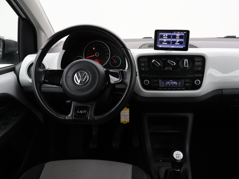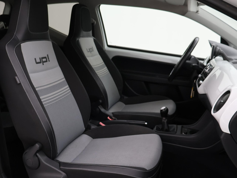 High Up! met White Up! pakket, Onderhoudsboekje compleet afgestempeld aanwezig, 3-deurs 1.0 met Elektrisch panorama schuifdak, Stoelverwarming, Parkeersensoren, Cruise control, Navigatie, Bluetooth, Airco, Half leder sportinterieur, Donker privacy glass achter, Lichtmetalen velgen, Mistlampen, Leder stuurwiel, Chromen buitenspiegels, Elektrische ramen en spiegels, De velgen zijn aangetast.