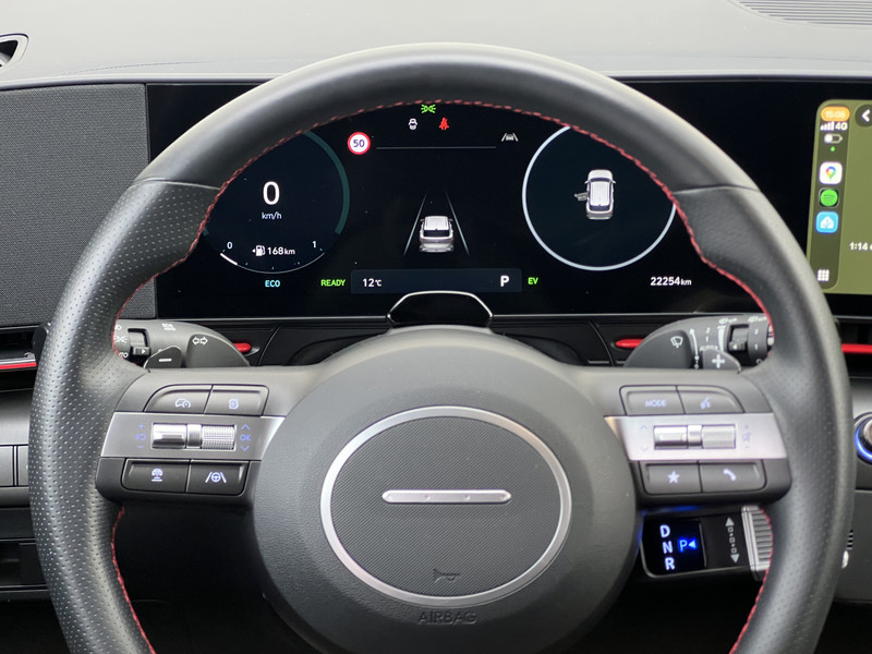 De Hyundai Kona is ook voorzien van ADAS. Deze Advanced Driver Assistence Systems fungeren als extra ogen en oren: ze houden voor u de weg in de gaten en grijpen in wanneer dat nodig is. Wat deze auto ook kan, is lezen. Hij 'leest' voor u de verkeersborden tijdens de rit en attendeert u erop door ze op het dashboard te projecteren. Het Lane-keeping systeem garandeert dat u zich niet onverhoeds buiten de lijnen van de rijstrook begeeft. Als een fietser of andere weggebruiker zich net buiten uw zichtveld naast de auto bevindt, slaat de actieve dodehoekdetectie meteen alarm. Verder is deze auto uitgerust met hill hold functie, vermoeidheidsherkenning, autonoom remsysteem en bandenspanningcontrolesysteem.
