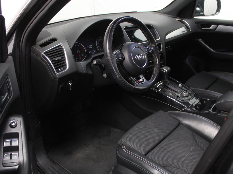 U merkt het aan de look and feel van deze auto: dit is kwaliteit. De Audi Q5 is ontworpen volgens de Duitse opvattingen van kwaliteit en degelijkheid, maar biedt tegelijk een hoge mate van comfort en uitstekende rijkwaliteiten. Ook qua looks springt deze auto eruit, vanwege de fraaie S-Line styling. De uitstekende prestaties van deze auto komen van de viercilinder benzinemotor en de automatische transmissie. Mooi om te zien en heerlijk om in te zitten zijn de sportstoelen, die u onderweg optimale ondersteuning geven. Met de krachtige xenonverlichting rijdt u ontspannen in het donker. Tot de uitrusting behoren ook 19 inch lichtmetalen velgen, sportonderstel, halflederen bekleding, warmtewerend glas, dakspoiler en in delen neerklapbare achterbank.
