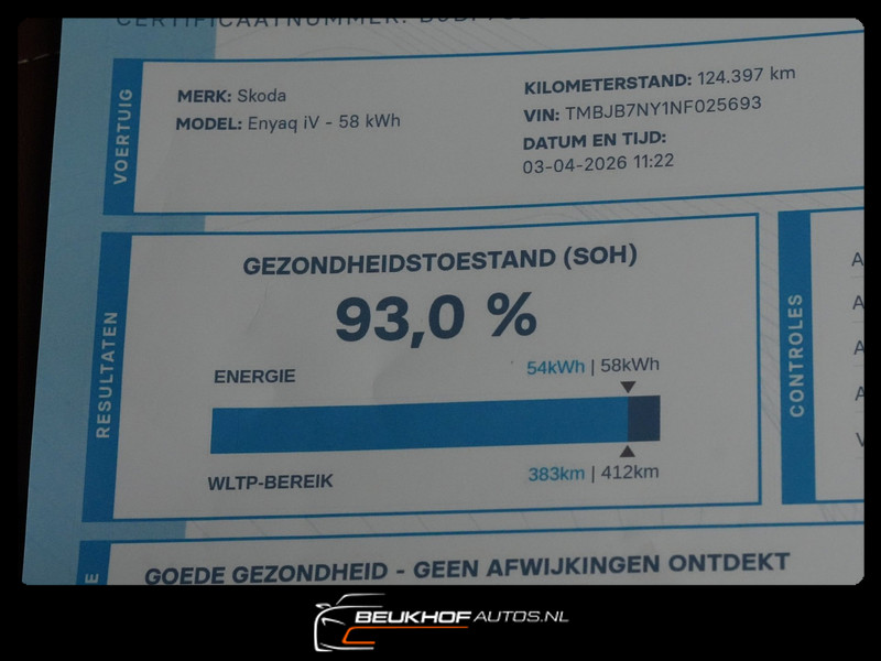 Skoda Enyaq iV Veel opties !! Hoge Soh 93% !! Trekhaak !! - Auto ziet er keurig uit en rijdt perfect - Voor meer foto's en elektrische auto's kijk op www.beukhofautos.nl