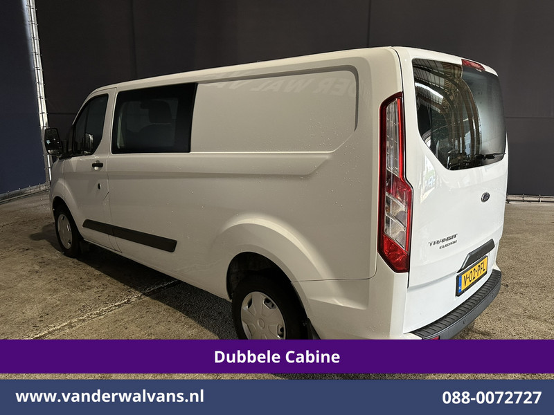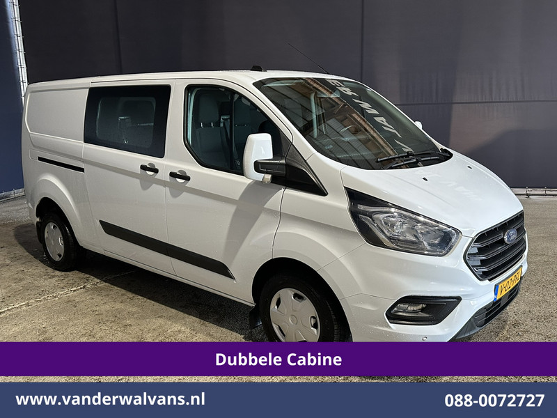 131pk sterke Ford Transit Custom L2H1 Euro6 dubbel cabine met airconditioning, 6 zitplaatsen en LED. Dealer onderhouden en voorzien van cruisecontrol, parkeersensoren, achterklep, 2800kg trekvermogen en bluetooth telefoonvoorbereiding.