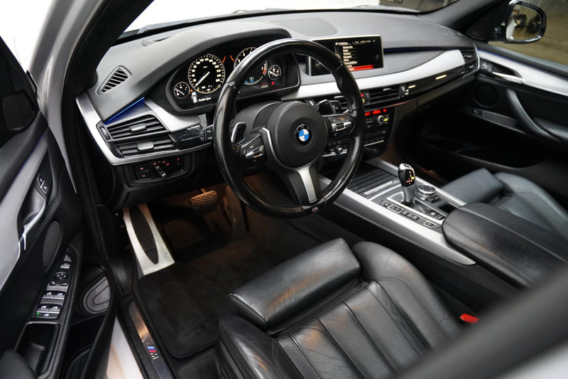 Zoals u mag verwachten van deze BMW X5 is hij uitgerust met een reeks aan actieve veiligheidssystemen. Dat de auto steeds meer taken van de bestuurder overneemt, merkt u bijvoorbeeld aan het systeem voor verkeersbord-detectie in deze auto. Het Lane-keeping systeem zorgt voor een automatisch constante positie binnen de rijstrook. Afdwalen is uitgesloten. Actieve dodehoekdetectie herkent andere voertuigen die in uw dode hoek rijden. Met dit hulpsysteem bent u veiliger en comfortabeler onderweg. De veiligheid van deze auto wordt verder verhoogd door head-up display, accident avoidance system, hill hold functie, vermoeidheidsherkenning en bandenspanningcontrolesysteem.