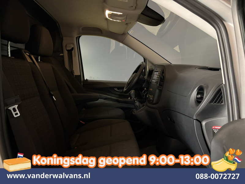 136pk sterke Vito L2H1 Euro6 met airconditioning en camera. Dealer onderhouden en voorzien van navigatie, cruisecontrol, lichtmetalen velgen, bijrijdersbank en bluetooth telefoonvoorbereiding.