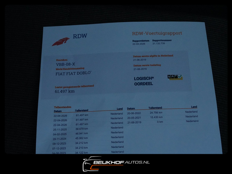 Fiat Doblò Cargo 1.3 MJ L1H1 SX Bestelbus uit 2019 Nederlandse auto met 61.497km origineel met N.a.p tellerrapport - Auto ziet er keurig uit zie foto's op www.beukhofautos.nl