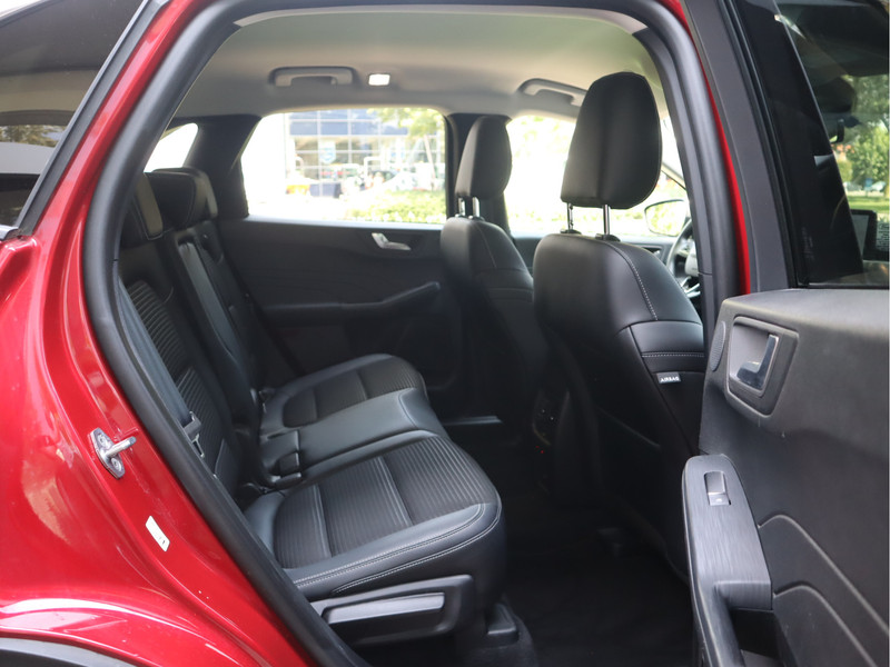 Origineel Nederlands geleverde Kuga Plug In Hybride, in prachtig Lucid Red Metallic, met oa elektrische stoelverstelling bestuurder, B&O audio, privacy glass, camera voor en achter, half lederen bekleding, adaptieve cruise control met stuurhulp, navigatie, stoel, achterbank en stuurwiel verwarming, deurrand beschermers en meer! Rondom goed op de zomerbanden en recent onderhoud gehad!