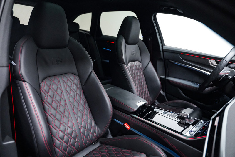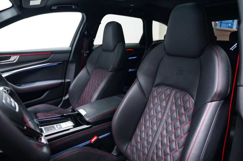 De meest fraaie Audi A6 die wij ons kunnen bedenken. 21 inch, hd matrix led, zwart optiek, panorama dak, vol lederen supersportstoelen met rood sticksel, elektrische stoelen met geheugen, Bang & Olufsen, servosluiting, 360* camera, adaptive cruise control, side assist, carbon inleg, akoestische ramen, apple car play, sfeerverlichting en keyless. Wat een schoonheid!