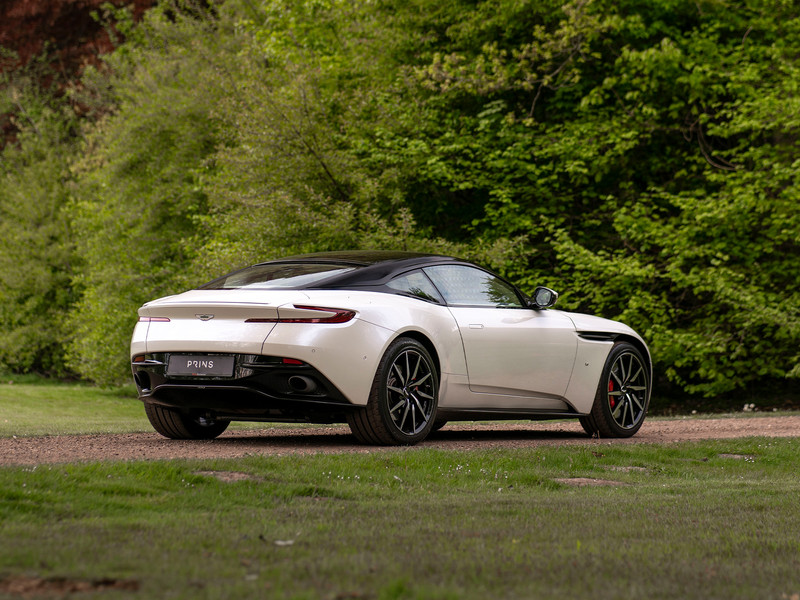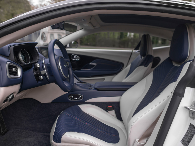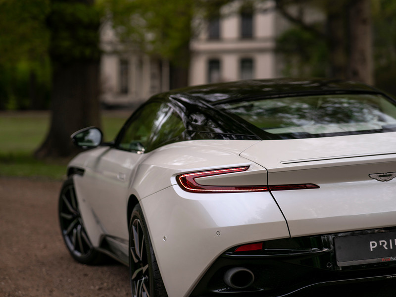 De sprong van DB9 naar DB11 was al tamelijk revolutionair. De huidige DB breekt design-technisch met meerdere Aston Martin tradities. Is elke vorm van uiterlijke opsmuk dan geen “bridge too far” voor de Brit? Nee, zelfs in deze hoedanigheid is de DB11 nog altijd onmiskenbaar een échte Aston Martin. Hoe baanbrekend sommige elementen ook zijn (C-vormige lichtunits achter, openingen in de voorste schermen die optisch doorlopen tot in de wielkuip), elk detail is met een uitermate goed gevoel voor stijl tot stand gekomen. Uitgedost in maagdelijk parelmoer Morning Frost White, komt de opwindende carrosserie buitengewoon goed tot z’n recht. Klinisch is deze stijlicoon allerminst, daar zorgen de zwart gelakte stijlen + dak wel voor. De frontlipspoiler, sideskirts en onderste bumperdeel achter bevatten dezelfde hoogglans afwerking. En ook de turbinevormige multi-spaakwielen, ‘geleend’ van JB’s Aston Martin DB10, zijn 2-kleurig. De rode remklauwen erachter die pure stopkracht symboliseren, kunnen we niet heel subtiel noemen. Terecht, want de manier waarop de DB11 versnelt is al net zo rauw…