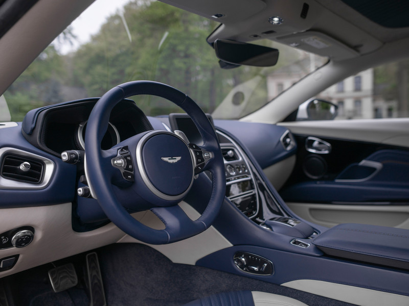 Horen en gehoord worden is trouwens ook wel van toepassing, want de geraffineerde 5,2 liter V12 is een beest van een machine. De dubbel geblazen 12-cilinder klinkt eerder mega bruut dan als een beschaafde Brit. Wat ons betreft een groot compliment! Terwijl het asfalt bijna lostrilt van al het V12 turbo geweld in het front, maakt de Aston Martin DB11 zich klaar om binnen 3,9 seconden van 0 naar 100 km/h te worden gelanceerd. Letterlijk. Verantwoordelijk hiervoor zijn 608 paarden en 700 Newtonmeters die enkel naar de achterwielen worden gestuurd. Driften wordt hierdoor geen kunst, maar een absolute must. Pas bij 322 km/h stopt de chique anabolen GT met versnellen; heeft u meteen kunnen ontdekken hoe de automaat bijna naadloos door zijn 8 versnellingen raast. Boulevard cruisers opgelet: de rauwe V12-brul laat stationair al alle terrasbezoekers op het puntje van hun stoel zitten. Het hoeft dus niet altíjd zo hard te gaan…