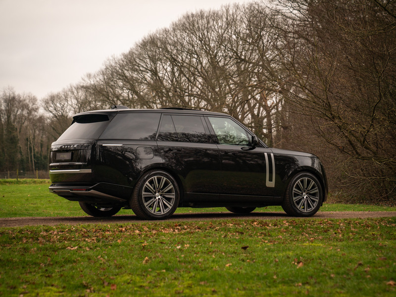 De reden waarom Santorini Black zo’n populaire kleur is voor de Range Rover spreekt voor zich: het diepzwart metallic lakwerk geeft het statige karakter van de topklasse SUV extra glans. Dit type auto rijd je niet om gezien te worden, maar omdat het bij jou als persoon past: de schitterende P460e Autobiography heeft namelijk meer stijl in z’n knipperlicht dan menig exclusieve wagen in z’n geheel. In het bijzonder in deze samenstelling: de Range Rover staat op 22 inch grote multi-spaakvelgen voorzien van een tijdloze en chique zilveren finish; dezelfde als op de elementen in de voorportieren, bumpers, grille, kofferklep en modelaanduiding. Mooi is ook dat Land Rover blijft vasthouden aan het kenmerkende silhouet van de Range Rover, te herkennen aan de hoge raampartijen, relatief rechtopstaande voorruit, rechte lijnen en gladde oppervlakken. Kortom, lekker no-nonsense en onmiskenbaar tegelijkertijd. De recentste serie is bovendien strakker dan ooit en bevat talloze classy, alsmede hypermoderne details. De verzonken portiergrepen en het donkergetinte glas accentueren de ingetogen en elegante inborst van de Range Rover: koning der SUV’s.