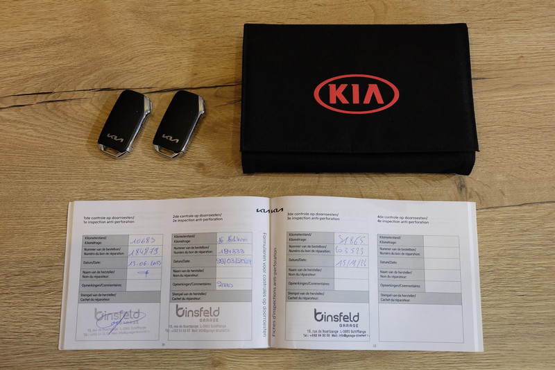 - 15-11-2024 (31.865 km): Onderhoudsbeurt uitgevoerd door Kia-merkdealer Garage Binsfeld in Schifflange. Afgestempeld in het onderhoudsboekje.