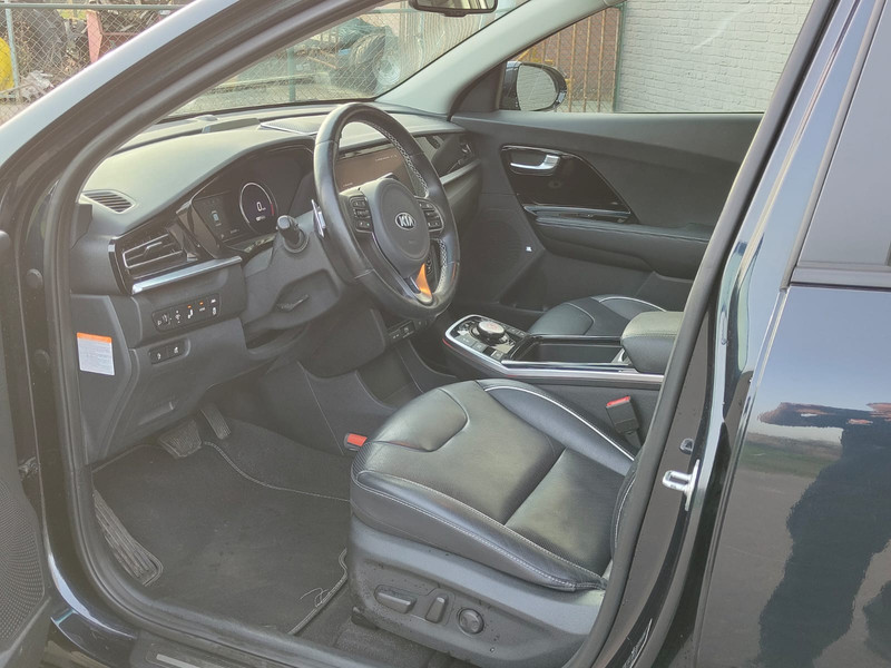 De Kia e-Niro vertegenwoordigt de nieuwe generatie auto's en verenigt elektrische kwaliteit en duurzaamheid met elkaar. U hoort slechts het lichte gezoem van de elektromotor tijdens het rijden. Een krachtige motor geeft deze auto zijn sportieve prestaties. De hoogwaardige, lederen bekleding benadrukt de kwaliteit van deze Kia. Dankzij de elektrische stoelbediening is het gemakkelijk om de optimale zitpositie te vinden. Zelfs op de koudste dagen zorgt het verwarmbare stuurwiel, de voorstoelen en de achterbankverwarming ervoor dat u en uw passagiers het nooit koud hebben in deze luxueuze auto. Ook 17 inch lichtmetalen velgen, LED koplampen, donker getint glas achter, LED-achterlichten en verstelbare lendensteunen zijn aan boord.