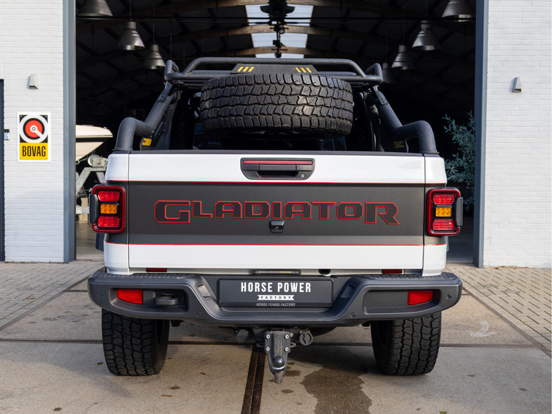 Deze uitvoering onderscheidt zich direct door zijn brute en imposante uitstraling. De verhoging, de Brute lichtmetalen velgen, de instaplijsten en het achterrek geven de auto een stoer en imposant karakter en maken hem uitermate geschikt voor werk én avontuur. Het interieur biedt verrassend veel comfort en luxe met lederen bekleding, automatische climate control, cruise control, navigatiesysteem, parkeersensoren achter, achteruitrijcamera, stuurverwarming en stoelverwarming, waardoor ook langere ritten aangenaam blijven. De K&N open inlaat onderstreept het sportieve en robuuste karakter van deze Gladiator en draagt bij aan de beleving en het geluid.